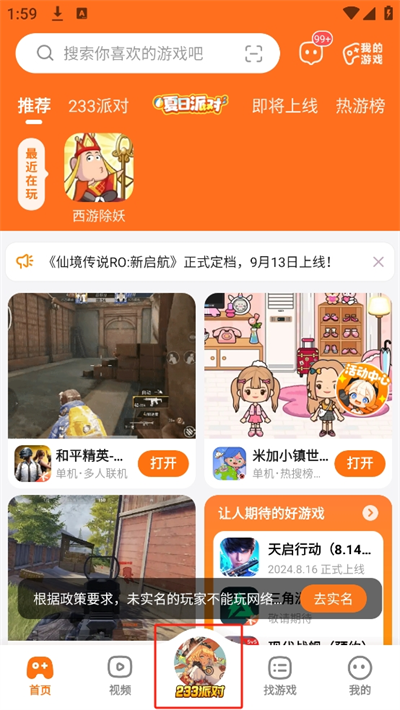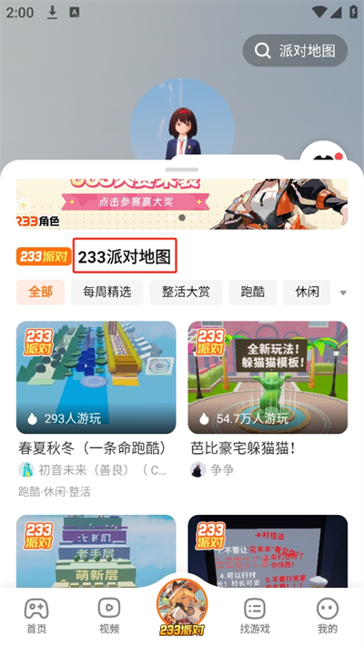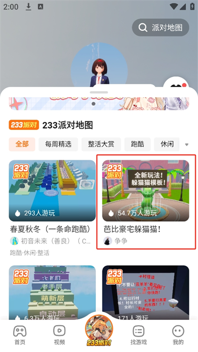 1、進(jìn)入首頁后我們可以看到各種不同類型的游戲,在【233派對】中平臺為玩家們帶來了可互動(dòng)的派對玩法;