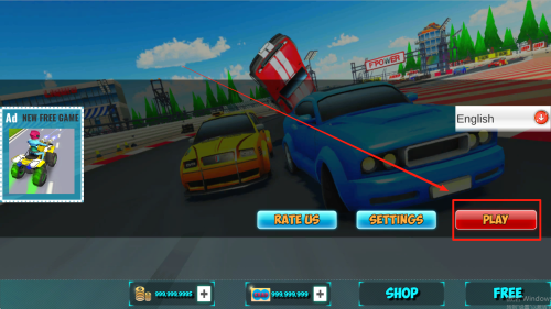 1、來到游戲主界面,點(diǎn)擊“PLAY”按鈕,進(jìn)入賽車游戲的賽事選擇或賽道環(huán)節(jié),借啟動(dòng)按鈕,開啟競速之旅,體驗(yàn)從準(zhǔn)備到開賽的流程,感受即將駕駛賽車馳騁的期待感。