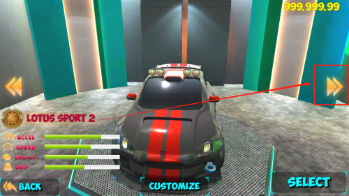 2、在車輛選擇界面,點(diǎn)擊右側(cè)箭頭,瀏覽更多賽車款式,可查看不同賽車的屬性,借車輛切換機(jī)制,挑選心儀賽車,體驗(yàn)玩法的定制化,感受賽車收集與選擇的樂趣。