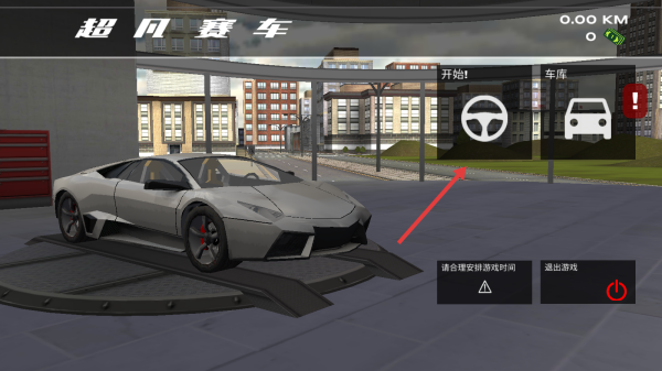 1、點(diǎn)擊【開始】,進(jìn)入《超凡賽車》,操控銀色超跑,開啟城市賽道駕駛。
