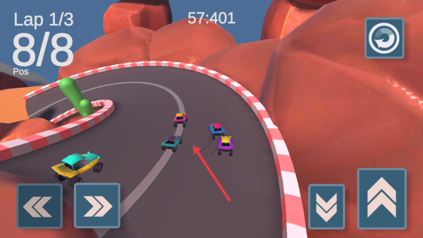 3、比賽中操控賽車,在彎道等路段靈活轉(zhuǎn)向,保持【Lap1/3】等節(jié)奏,超越其他賽車爭(zhēng)取領(lǐng)先。