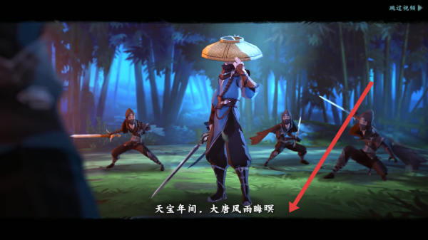1、看到開場動畫,想快速開局點右上角跳過視頻,想了解劇情,完整觀看熟悉天寶年間大唐背景。
