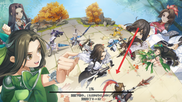 2、資源加載階段,等待進度條推進,當(dāng)前1%,共541.24M,同時瀏覽角色群像,記不同武俠形象與武器。