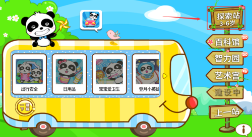 1、點擊紅框熊貓?zhí)崾究?,查?-6歲探索站內容。