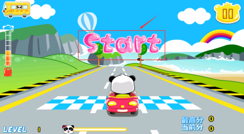 3、點擊紅框START區(qū)域,駕駛熊貓賽車開始比賽。