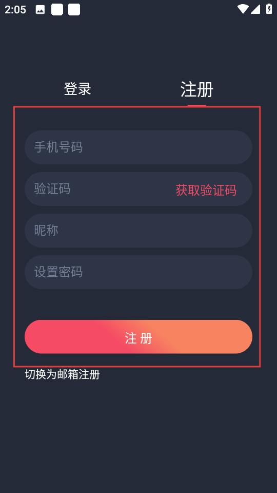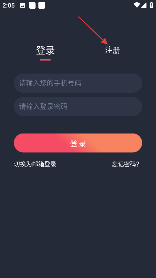 3、在登錄頁面,點(diǎn)擊注冊(cè)選項(xiàng),前往注冊(cè)頁面。