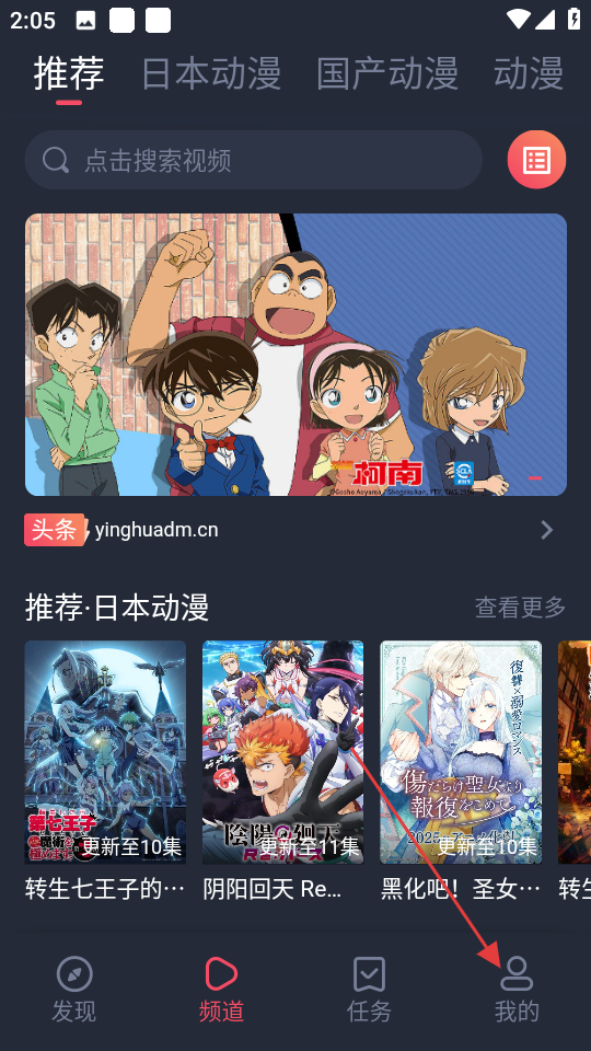 1、打開抹茶動(dòng)漫,在底部導(dǎo)航欄點(diǎn)擊我的。