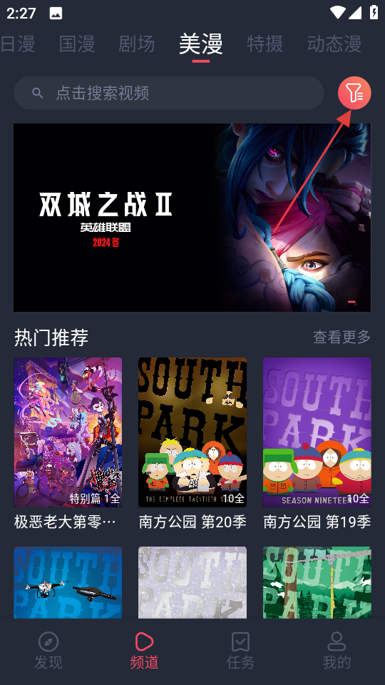 2、進入美漫頁面后,點擊右上角的篩選圖標。