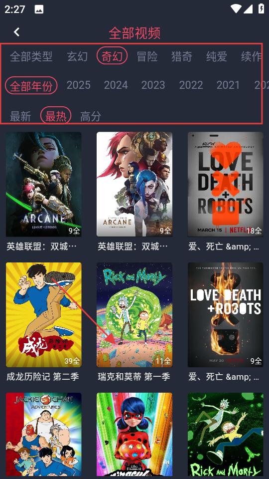 3、在篩選頁面,選擇好條件,找到并點擊瑞克和莫蒂第一季。
