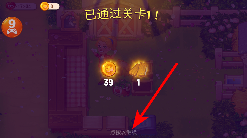 4、當(dāng)完成關(guān)卡的所有要求后,就會(huì)顯示已通過關(guān)卡,此時(shí)可獲得金幣、木材等獎(jiǎng)勵(lì),之后點(diǎn)按繼續(xù),前往下一個(gè)關(guān)卡挑戰(zhàn)。