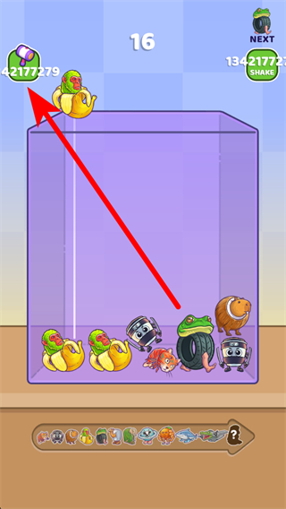 2、當(dāng)容器中有相同的動(dòng)物時(shí),它們會(huì)自動(dòng)合成,生成新的動(dòng)物,合成過(guò)程中還能獲得積分,界面上方會(huì)顯示當(dāng)前積分。