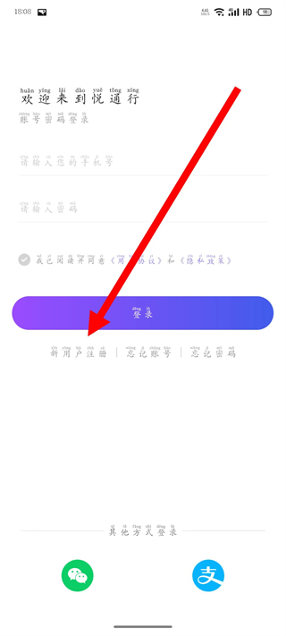 2、在登錄頁面,點擊新用戶注冊,進入注冊賬號界面。