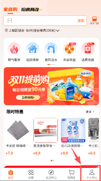 1、打開生活服務類應用,點擊底部個人中心選項,進入個人中心頁面。