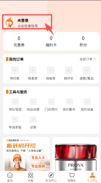2、在個人中心頁面,點擊點擊登錄賬號選項,進入注冊登錄頁面。