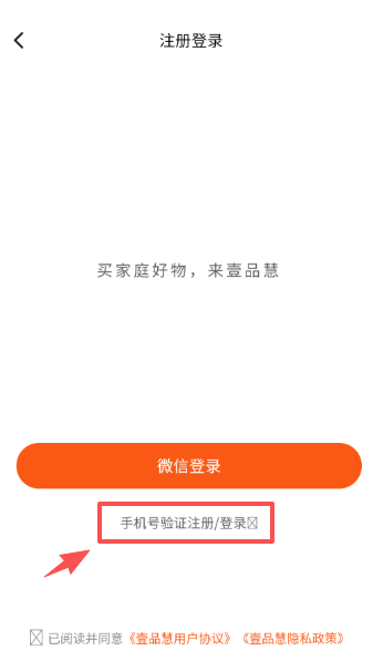 3、在注冊登錄頁面,點擊手機號驗證注冊/登錄選項,進入手機號登錄頁面。