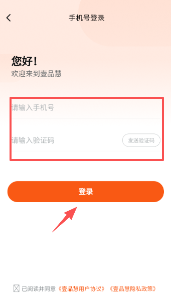 4、在手機號登錄頁面,輸入手機號和驗證碼,點擊登錄按鈕,完成賬號登錄操作。