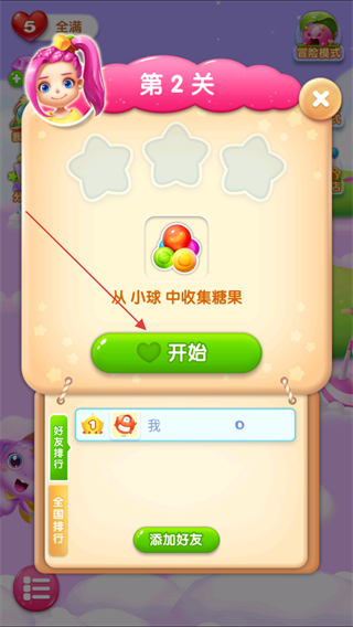 1、打開游戲進(jìn)入游戲主頁,選擇關(guān)卡,消耗愛心數(shù)量進(jìn)入關(guān)卡。