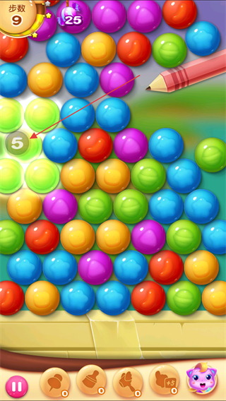 2、在規(guī)定步數(shù)內(nèi),通過連接相鄰的小球進(jìn)行消除從而獲得糖果。