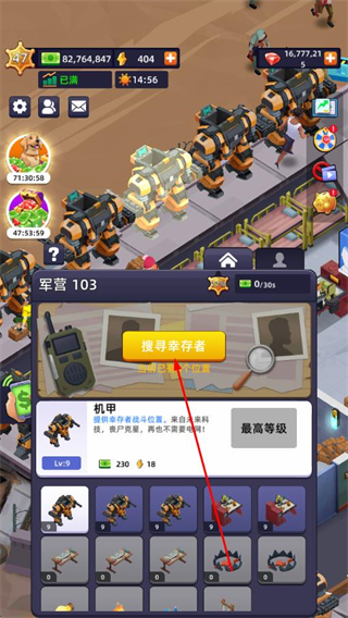 4、點擊搜尋幸存者,招募更多幸存者,擴(kuò)充基地人口,提升基地實力。