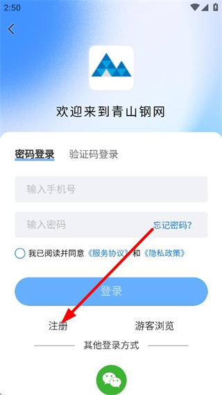 2、隨后可以在登錄頁(yè)面,點(diǎn)擊注冊(cè),進(jìn)入新用戶(hù)注冊(cè)頁(yè)面。