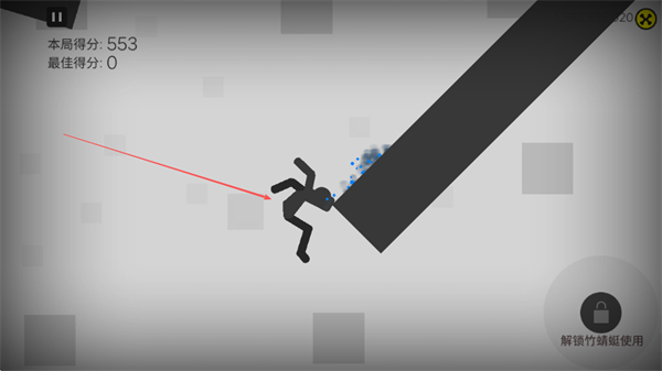 2、火柴人起跳后在空中翻轉(zhuǎn)、移動(dòng),撞擊各種物體如黑色長桿、地面等,產(chǎn)生粉碎效果,積累得分。
